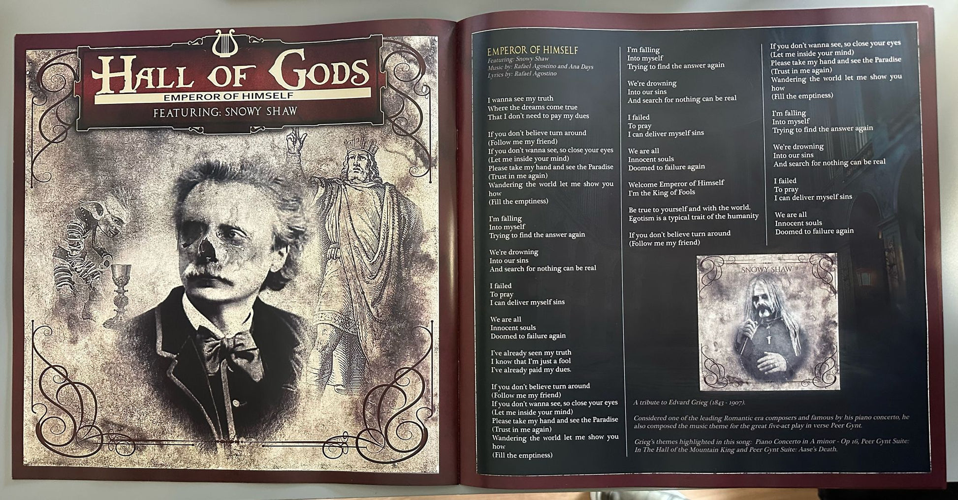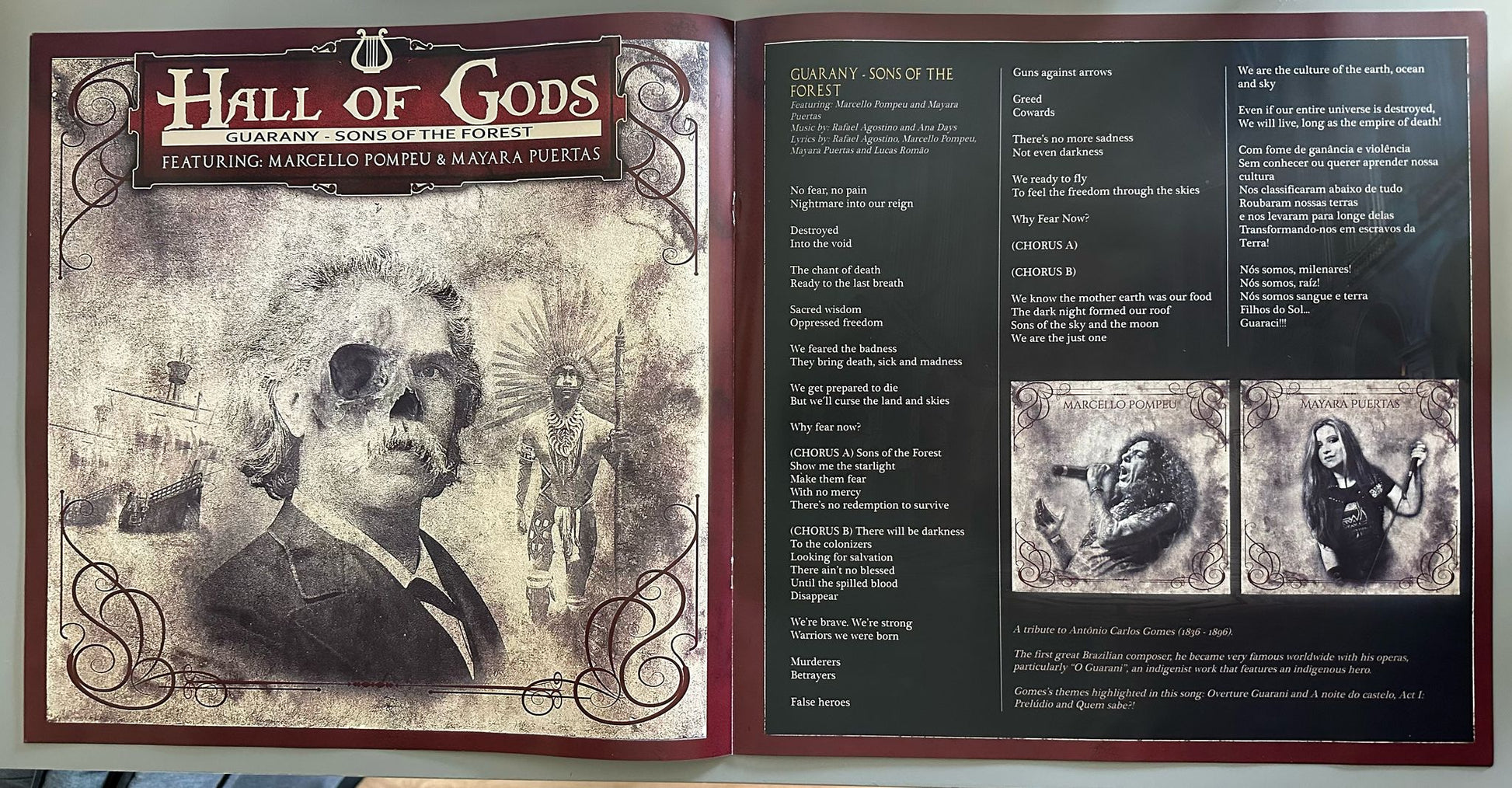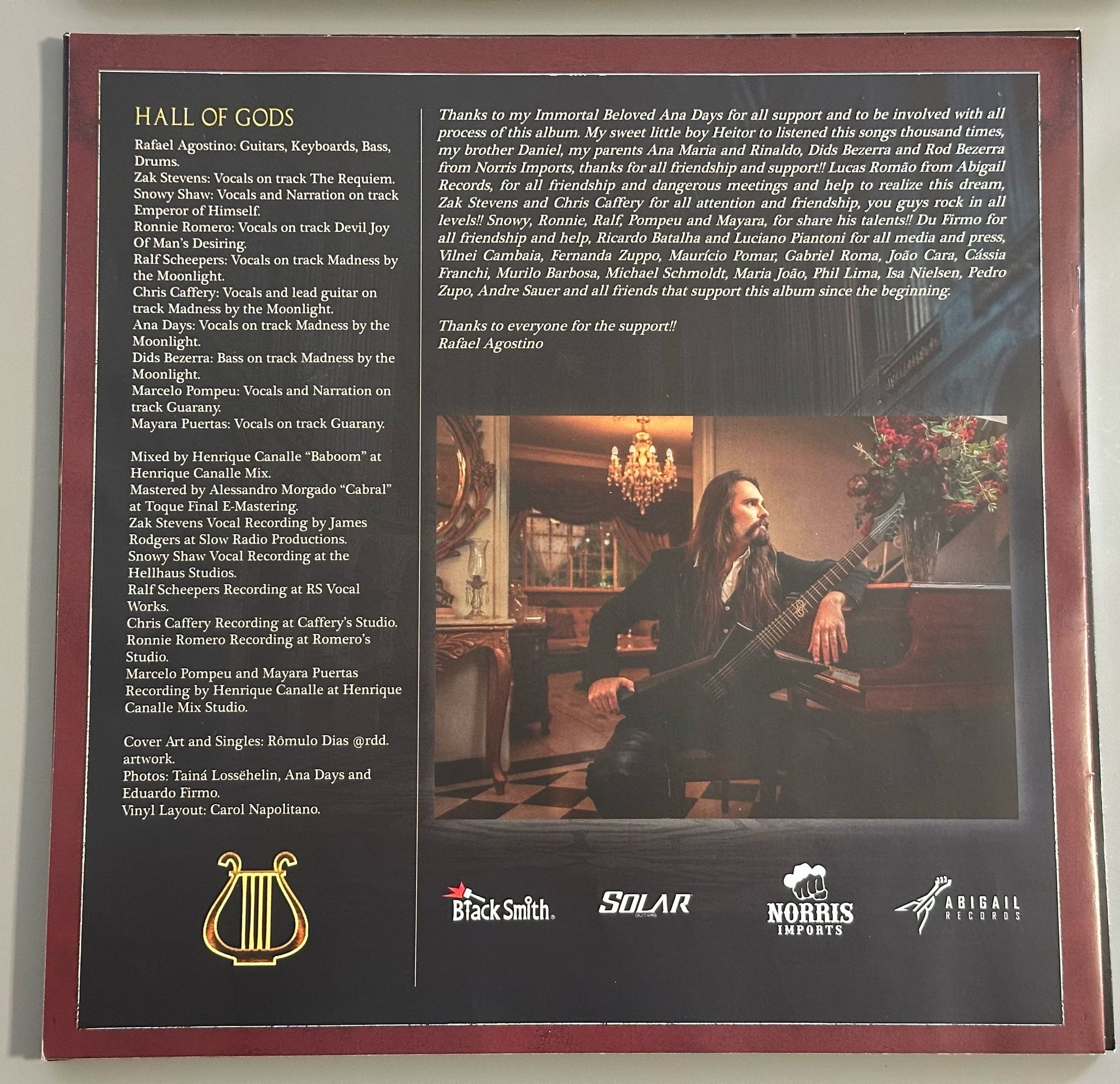 The "Hall of Gods - A Tribute to the Gods of Music" LP is a limited edition vinyl record featuring great names of metal scene like Zak Stevens and Chris Caffery (Savatage), Ralf Scheepers (Primal Fear), Snowy Shaw (solo, ex-King Diamond, Therion), Ronnie Romero (ex-Rainbow, ex-MSG), Marcelo Pompeu (Korzus) and May Puertas (Torture Squad).